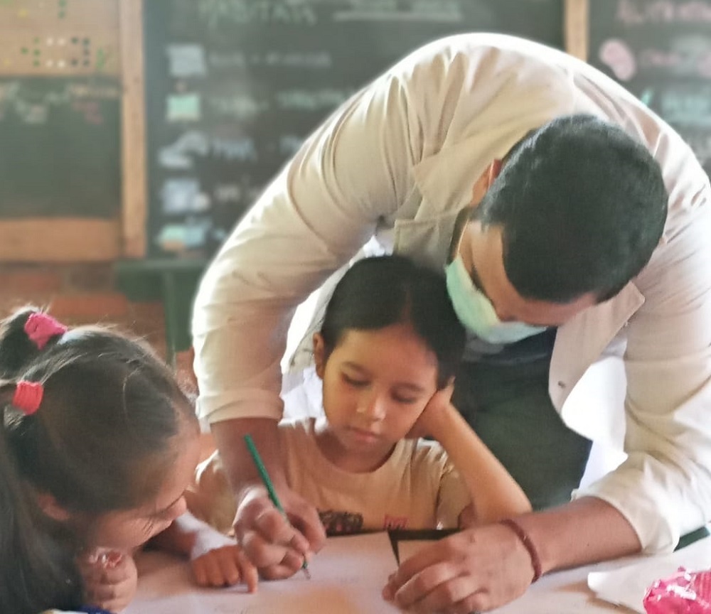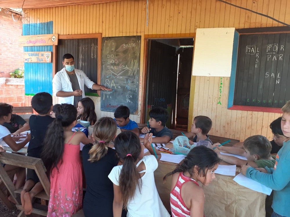 Respecto al período más riguroso de la pandemia, el profesional explicó que la forma de enseñanza que aplicó fue presencial, porque ya venía trabajando con su propio protocolo desde el inicio del proyecto porque para “trabajar con niños inmunodeprimidos o en un contexto donde hay dengue, sarna, lepra o leishmaniasis, teníamos un protocolo de seguridad e higiene, lo que sí, al no haber transporte tuvimos que cambiar el tiempo de permanencia en cada circuito, porque cuando íbamos a una comunidad, teníamos que permanecer días enteros allá. Entonces, a algunas comunidades teníamos que visitarlas dos o tres veces al mes nada más cuando antes era semanal. También desarrollamos cuadernillos e hicimos apoyo escolar a través de Instagram, Facebook, WhatsApp, y esta actividad fue publicada por la Asociación Educar para el Desarrollo Humano, de cómo armábamos las clases digitales, pero siempre lo presencial es la fortaleza de nuestro trabajo”, aclaró.