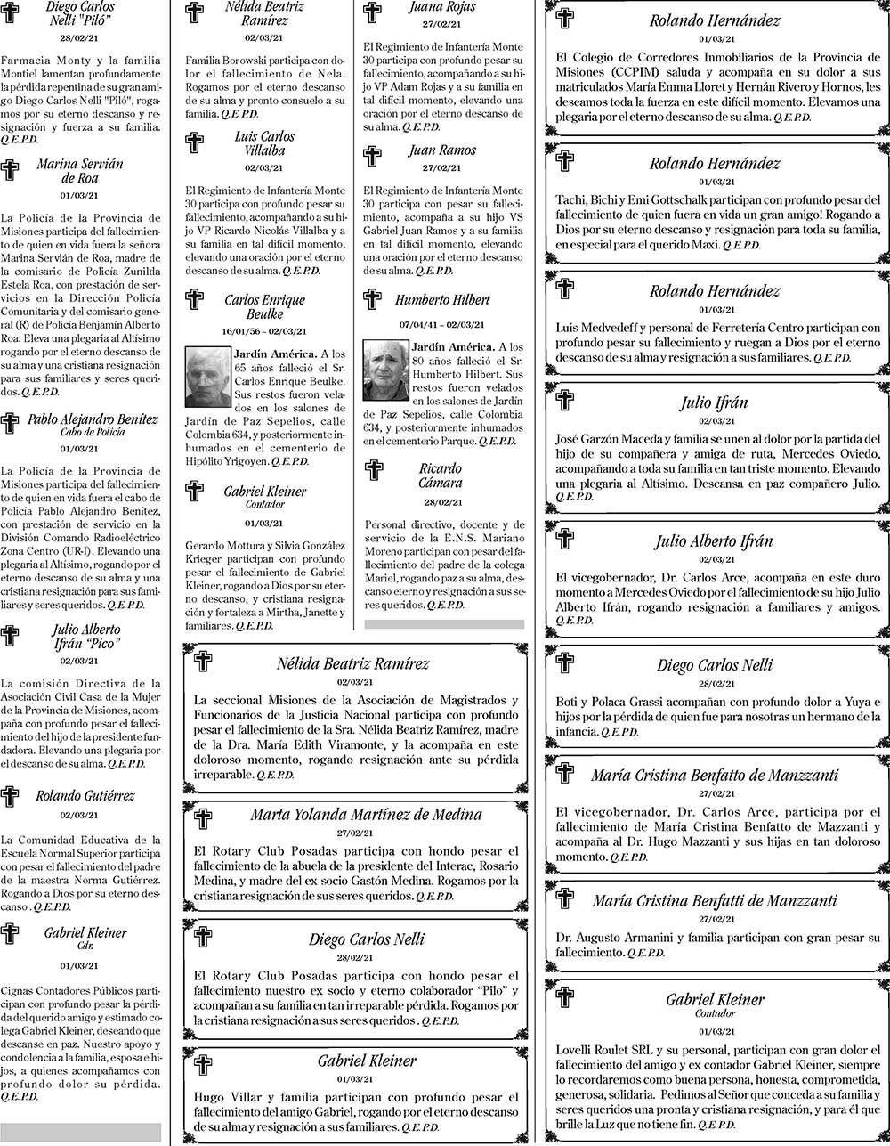 Fúnebres del Miércoles 3 de Marzo de 2021