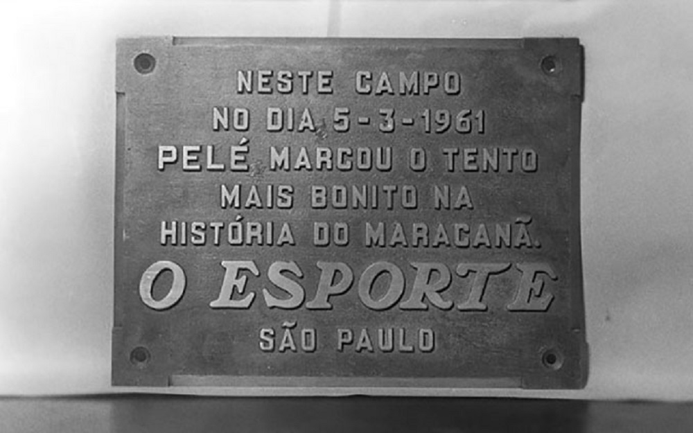 Dicho y hecho: al poco tiempo, el hoy desaparecido diario deportivo paulista O Esporte colocó una placa de bronce con una inscripción que, traducida, significa: “En este campo, el día 5-3-61, Pelé marcó el tanto más bonito en la historia del Maracaná”.