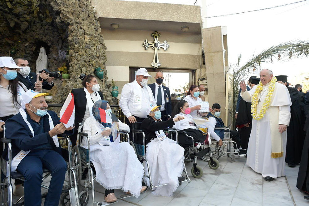 Francisco visitó luego la Catedral de Nuestra Señora de la Salvación de Bagdad, blanco en 2010 de un atentado del grupo Estado Islámico (EI) que provocó más de 50 víctimas.