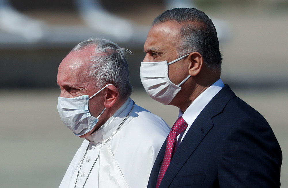 En su primera actividad oficial en suelo iraquí, el Papa se reunió durante 20 minutos con el primer ministro Mustafa Al Khadimi en el salón VIP del aeropuerto de Bgadad, antes de dirigirse al Palacio Presidencial.