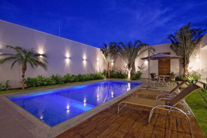 En este caso podemos optar por colocar pocas luces dentro de la pileta y generar armonía en su entorno, tal vez algunas luces bidireccionales sobre un muro que la rodea.