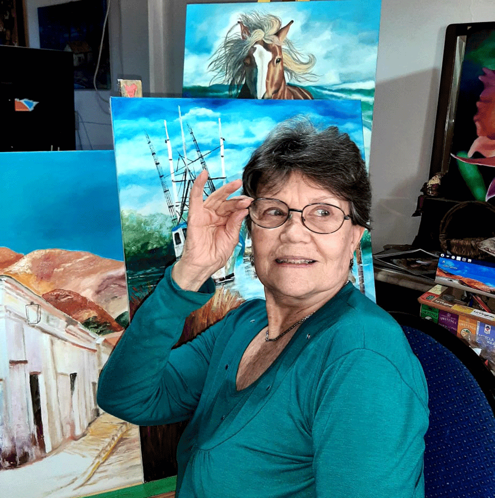 María Ramona Raviol de Caffe fue docente de grado y profesora de cerámica, hoy en día pasa su tiempo sumergida en la pintura. Nos encontramos por medio de las redes, en este nuevo mundo obligado por la pandemia en que todo se volvió online. Pues esta amistad también, pero lo maravilloso es seguir descubriendo gente con arte en las manos.