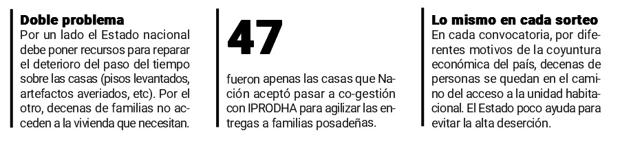 Así, seguirán quedando decenas de casas abandonadas, a la espera de encontrar en algún momento una familia propietaria que evite el deterioro del paso de los años que llevan terminadas y sin ser habitadas. Algo incomprensible para una provincia donde el déficit habitacional es enorme.