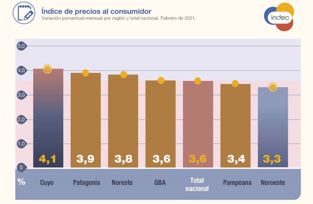 Si bien en febrero el índice experimentó un crecimiento menor, para llegar a cumplir la meta del 29% de inflación pautada por el Gobierno en el Presupuesto 2021, el IPC debería ubicarse en torno al 1,8% en los diez meses restantes.
