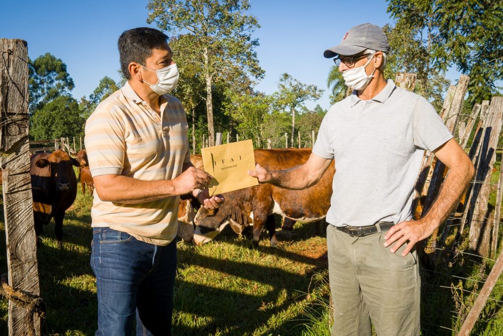 MARCELO RODRÍGUEZ. El presidente del IFAI entregó el aporte financiero al productor ganadero de Capioví.