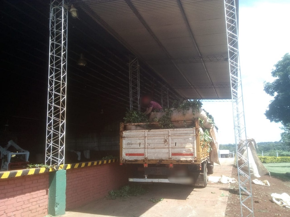 Una vez en el lugar, se constató un camión cargado con 75 raídos de la hoja verde y 25 tareferos, quienes manifestaron que fueron contrataron por un joven de 21 años para realizar el trabajo.