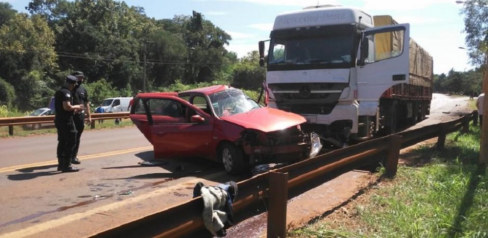 Alrededor de las 10.50 de este martes, en inmediaciones del Kilómetro 6 de Eldorado, un camión Mercedes Benz con acoplado que circulaba en sentido Norte-Sur impactó por razones que se investigan contra el lado del conductor de un automóvil Renault Symbol color rojo.