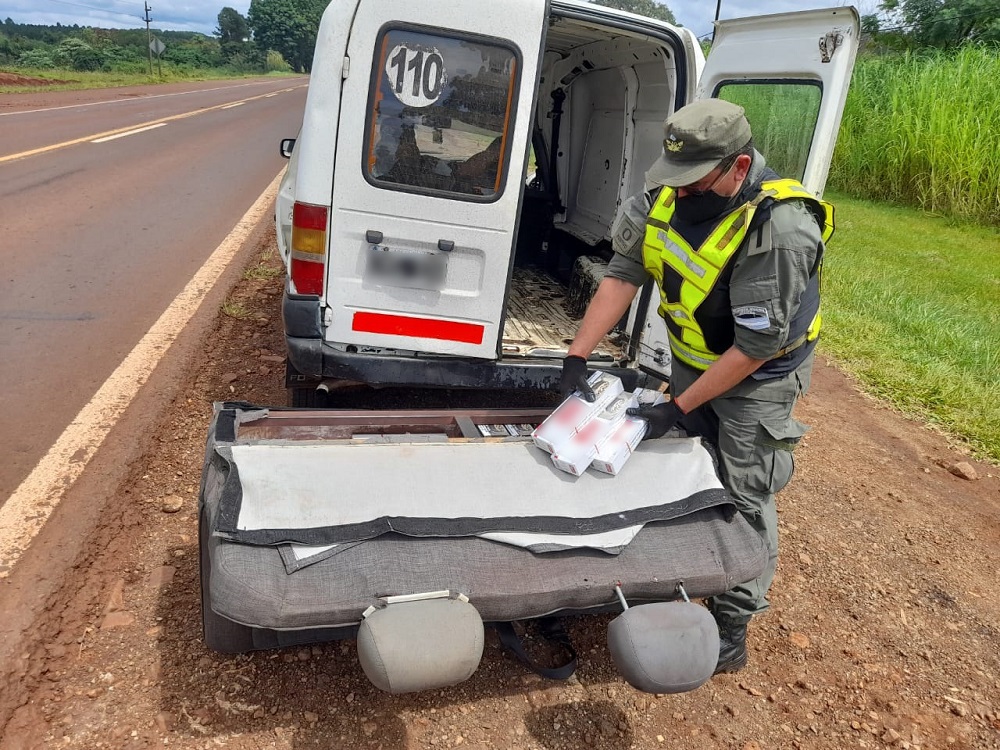 Ayer, efectivos de la Gendarmería Nacional con asiento en Jardín de América y dependiente del Escuadrón 11 “San Ignacio”, en medio de un control vial de rutina, a la altura del kilómetro 1.434 de la ruta Nacional 12, detuvieron a una camioneta Ford Courier con dos ocupantes. El mismo se encontraba adaptado en la parte trasera de un vehículo, pegado con una tela con abrojos, donde había escondido 2 mil paquetes de cigarrillos de procedencia ilegal.