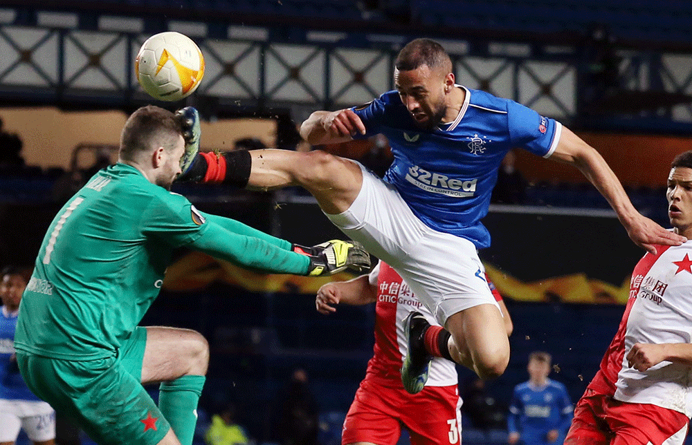 Ocurrió en el encuentro entre el Rangers y Slavia Praga. El delantero del equipo escocés fue el protagonista de una acción que recorre el mundo tras golpear al arquero Ondrej Kolar, quien debió dejar la cancha con la cara llena de sangre.