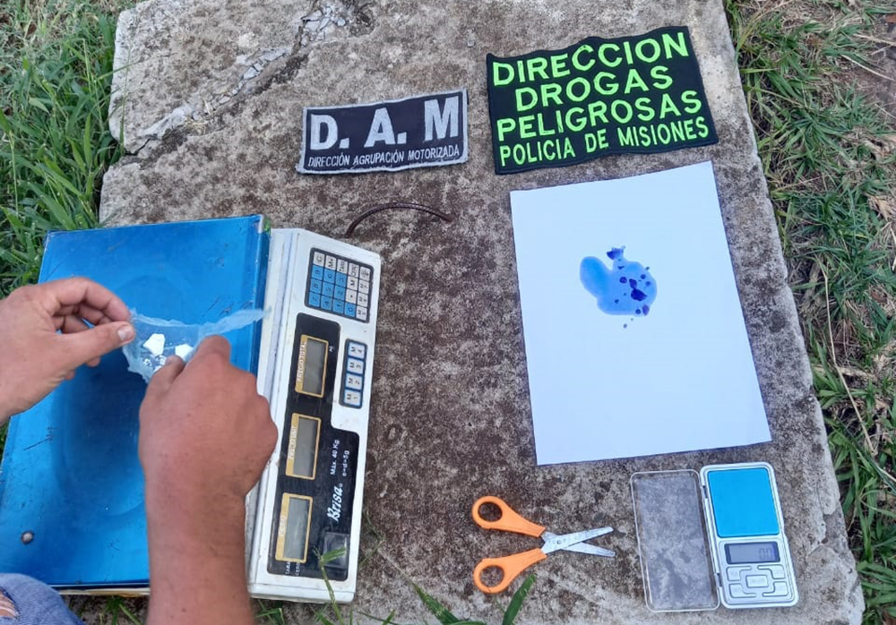 Ante esta situación, solicitaron la presencia en el lugar de personal de la Dirección de Drogas Peligrosas. Luego de realizar la prueba de campo correspondiente, la misma arrojó un resultado positivo para Clorhidrato de Cocaína, con un pesaje de 4,08 gramos y un aforo de $6.720 pesos.
