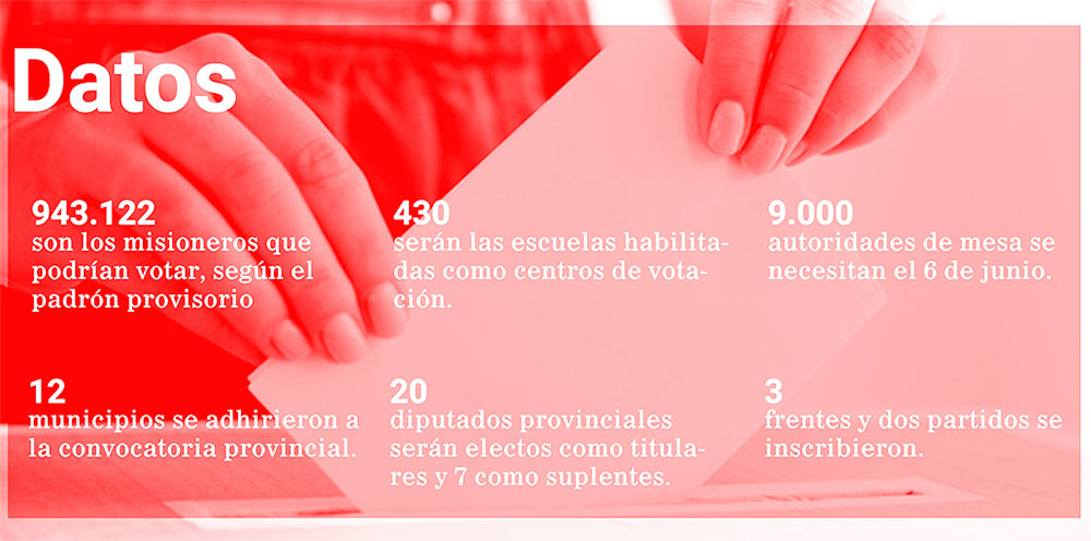Desde el Tribunal Electoral de Misiones señalaron que, hasta el momento, son 943.122 misioneros los que podrían votar en las elecciones provinciales que se llevarán a cabo el domingo 6 de junio, según el padrón provisorio. Mientras que para autoridades de mesa son más de 6 mil los inscriptos y todavía faltan 3 mil para llegar al objetivo promedio. Confirmaron también que alrededor de 430 escuelas serán centros de votación.