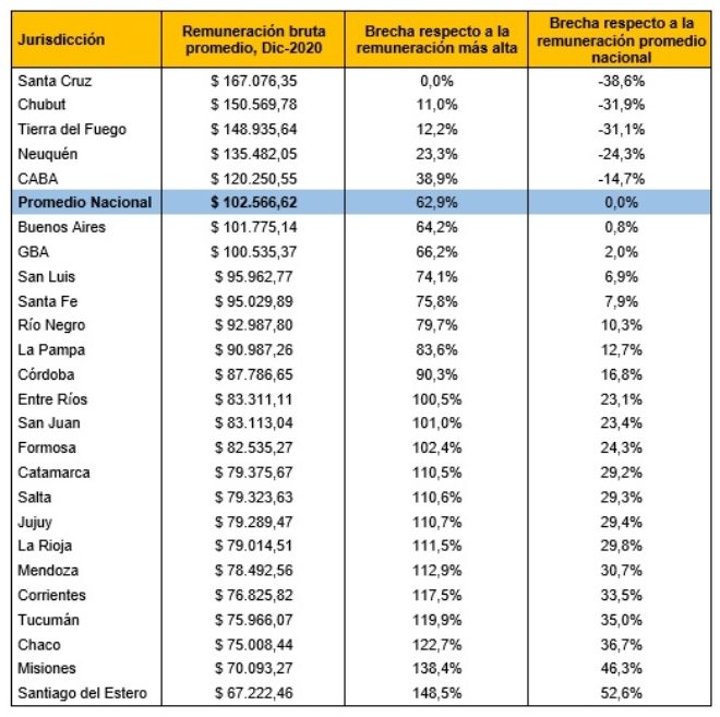 Así, de acuerdo a un informe elaborado por la consultora Politikon Chaco, en base a los datos suministrados por el Ministerio de Trabajo, Empleo y Seguridad Social de la Nación, se aclara que dicha cifra es por “todo sentido”, por lo cual incluye montos remunerativos (sueldo básico, y todo tipo de suplementos adicionales que tengan el carácter de habituales, viáticos, gastos de representación, y SAC, entre otras) como también los montos no remunerativos (como indemnizaciones, becas y/o beneficios sociales otorgados por el empleador).