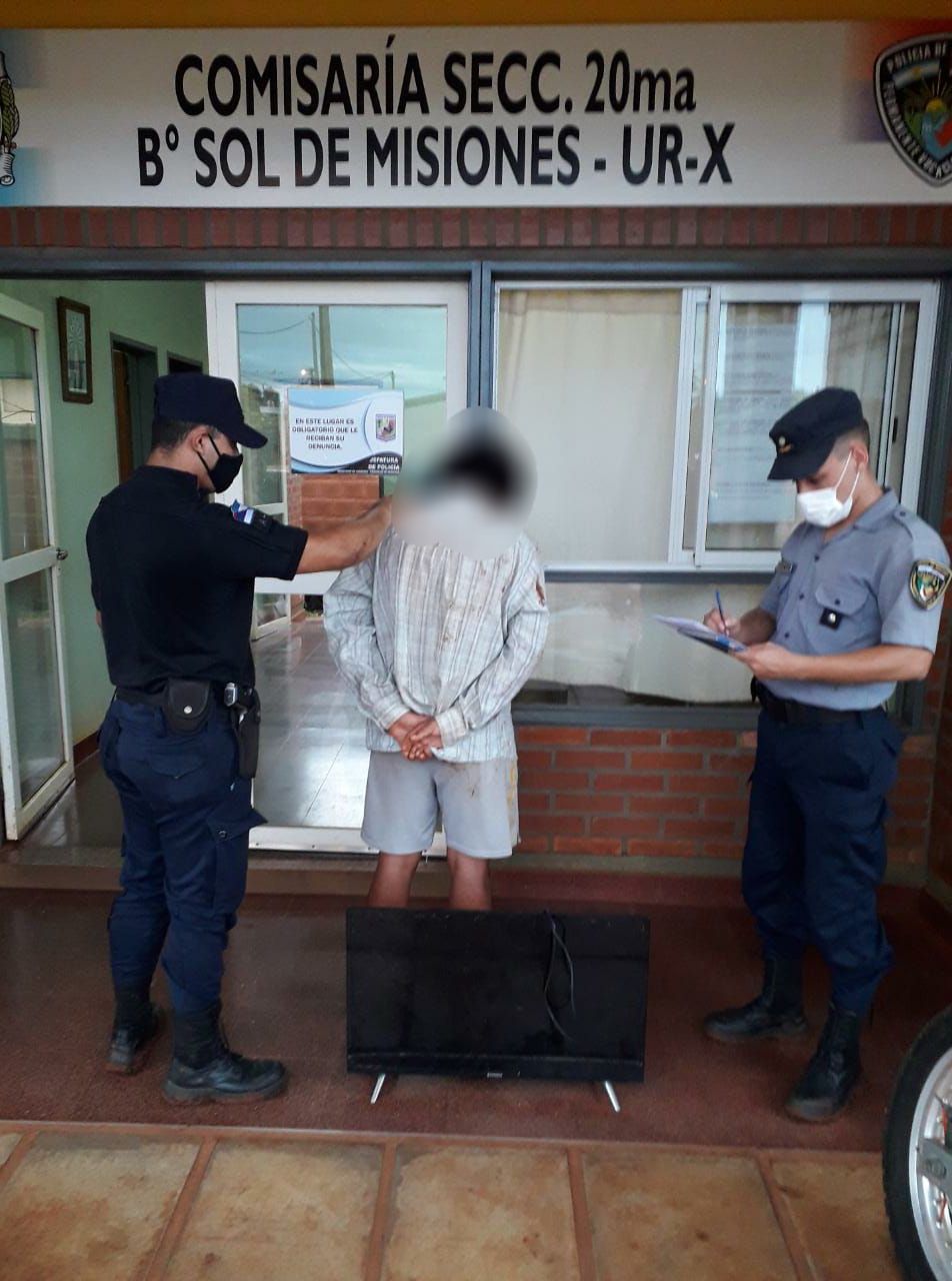 Un hombre de 30 años terminó detenido ayer por la tarde en el barrio Sol de Misiones, luego de sustraer un televisor desde la casa de su vecino de 40 e intentar ocultarlo en un descampado.