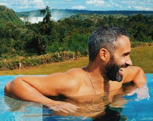 “Increíble paisaje”, fue la frase que utilizó Álvarez para publicar una imagen de sí mismo en la pileta con las Cataratas de fondo.
