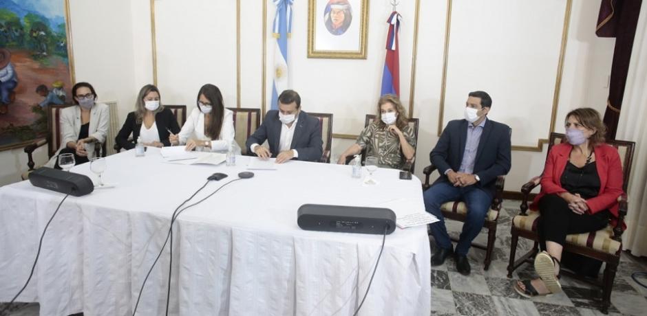 Oscar Herrera Ahuad firmó el convenio durante la visita de la ministra Elizabeth Gómez Alcorta con el objetivo de avanzar de manera articulada entre los poderes y los Estados sobre la problemática.