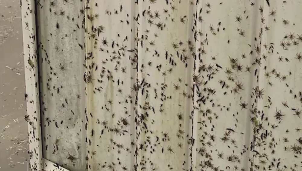 En medio de todo esto, miles y miles de arañas huyen de las intensas inundaciones y llegan hasta las casas de las personas en busca de refugio y más altura para poder sobrevivir al agua. Las imágenes registradas de la cantidad de estos animales parecen de película.