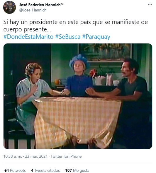 Tal es así que Twitter se volvió un medio de desahogo para cientos de paraguayos que lo reprochan con el hashtag #DóndeEstáMarito.