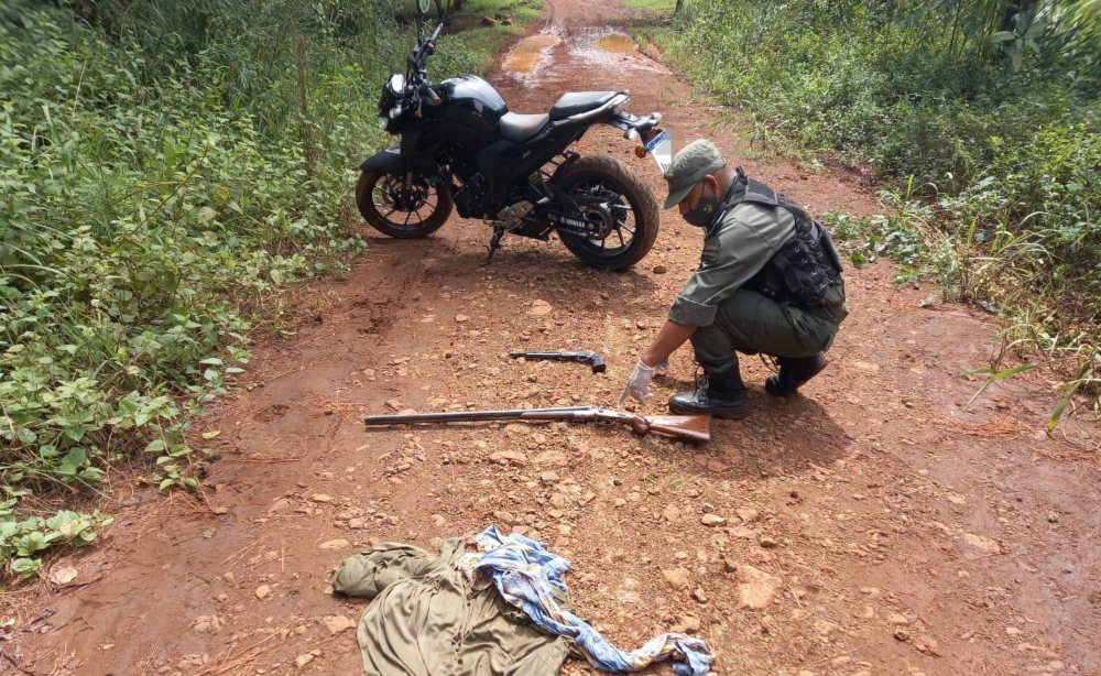 Por otra parte, la misma fuerza federal del Escuadrón 11 “San Ignacio” se encontraba realizando un control sobre un camino terrado cuando observaron que dos personas que se trasladaban en una motocicleta Yamaha FZ, quienes al percatarse de la presencia de los gendarmes, abandonaron a pocos metros antes de llegar al control un bulto y huyen hacia el monte.