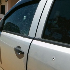 IMPACTOS. La impronta de los balazos en la camioneta del abogado.