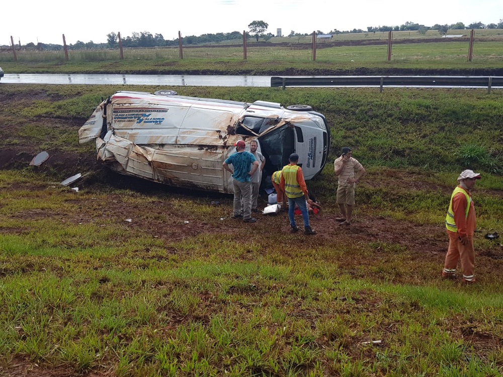 En el lugar, por causas que se tratan de establecer, el conductor de una camioneta Mercedes Benz Sprinter blanca -de una empresa de correos y encomiendas- perdió el control del rodado, despistó y volcó a un costado de la cinta asfáltica.
