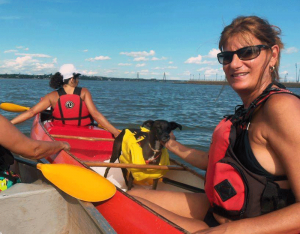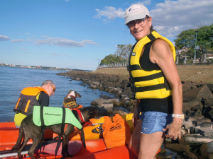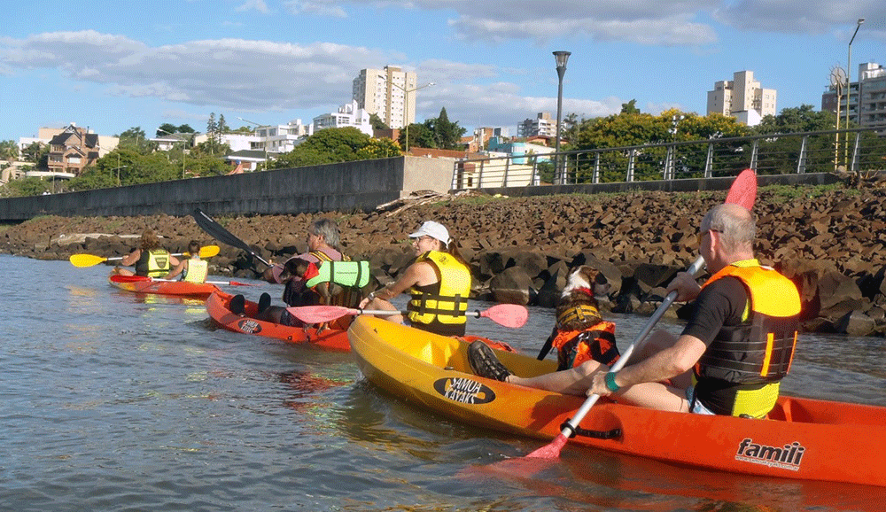 Esto es lo que nos contó: la actividad consistió en navegar en piraguas con nuestros perros. Los más tranquilos, permanecieron sentados disfrutando, un par de nerviosos iban bien cerca para poder agarrarlos bien.