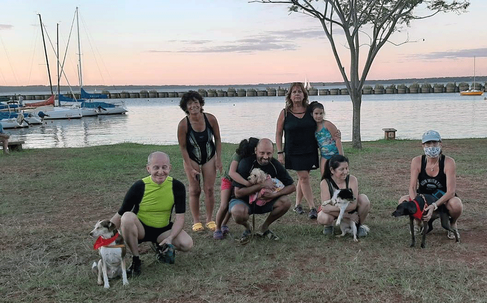 Josy y Canelita estaban tan excitados con la novedad de la experiencia que terminaron tirándose, o cayendo, al agua desde el borde pero la resistente asa que dispone el chaleco facilitó subirlos de nuevo.