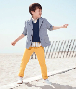 Para los varones, podemos ver tendencias variadas, pero el estilo clásico se posiciona para acompañar al look romántico de niñas. Las prendas de niños que posicionan como las preferidas son las camisas y saco tipo blaezer.