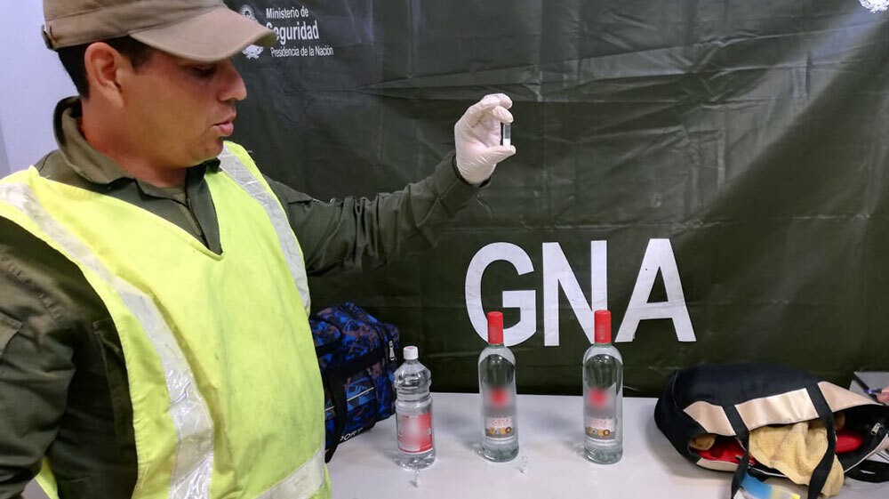 En audiencia respectiva, Galeano admitió el hecho y reconoció que a las 3 del viernes 15 de noviembre de 2019 trasladaba en un bolso de mano y en una valija, tres botellas de vodka cargadas con el anestésico, en total tres litros. Viajaba en colectivo con destino a Buenos Aires y fue descubierta en el control de los gendarmes del Escuadrón 8 “Alto Uruguay” sobre la ruta nacional 14 en la localidad de San José.