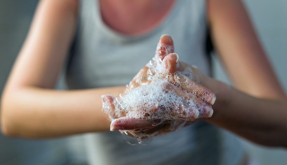 Closeup woman’s hand washing in bathroom or kitchen during the day, Unrecognizable Person Cleaning hands, Hygiene,