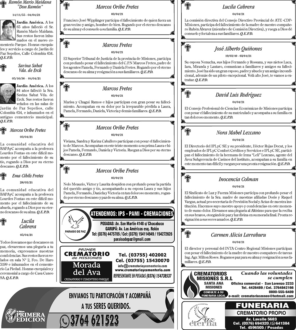 Tags: Fúnebres 06-04-2021
