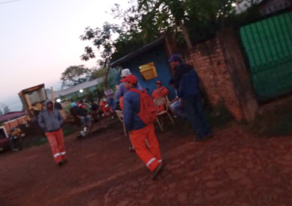 Una veintena de trabajadores municipales de Montecarlo, afiliados de ATE, se encuentran desde esta mañana temprano en las puertas de la playa de estacionamiento de Obras Públicas de esta ciudad.