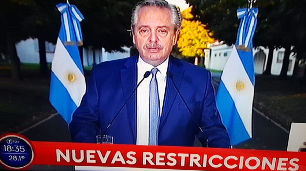 Así lo anunció este miércoles por la tarde el presidente Alberto Fernández a través de un mensaje grabado en la Residencia de Olivos en la que también anunció que se cerrarán casinos, bingos y discotecas, en tanto que se suspenderán las salidas del país con fines turísticos, los viajes de egresados y las competencias deportivas amateurs en lugares cerrados.