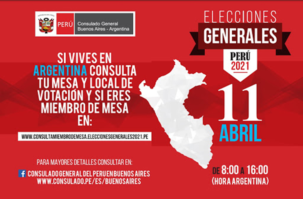 Además, el Gobierno autorizó la instalación de locales de votación en distintas ciudades de la Argentina, para que los ciudadanos peruanos residentes en el territorio nacional puedan emitir su voto.