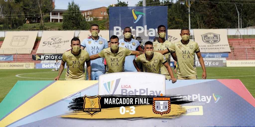 Águilas Doradas fue obligado este domingo por las autoridades de la liga colombiana de fútbol a jugar con siete futbolistas, diezmado entre lesionados y afectados con Covid-19, y perdió 3 a 0 ante Boyacá Chicó en el partido correspondiente a la fecha 18.