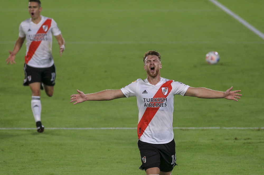 Lucas Beltrán, a los 35 minutos del primer tiempo, asistido por Nicolás De la Cruz, abrió la cuenta para el elenco “millonario” en lo que fue su primer gol en Primera División.
