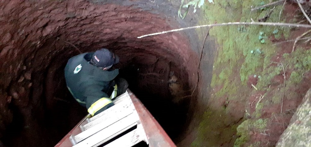 Efectivos de la Comisaría de Alba Posse y Bomberos Voluntarios de Santa Rita, pusieron a salvo a dos perros que cayeron a un pozo de unos cinco metros de profundidad, el cual se sitúa en un terreno baldío frente a la plaza de Alba Posee.