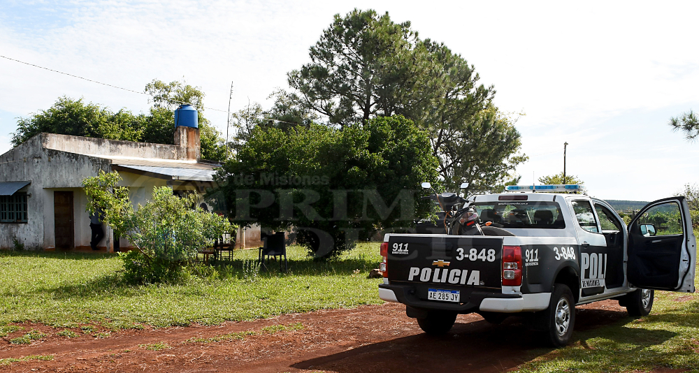 El campo en el que irrumpieron dos automóviles con diez asaltantes el martes a las 8.30, está ubicado a siete kilómetros de la ruta nacional 105 en proximidades al arroyo Pindapoy Chico, Garupá.