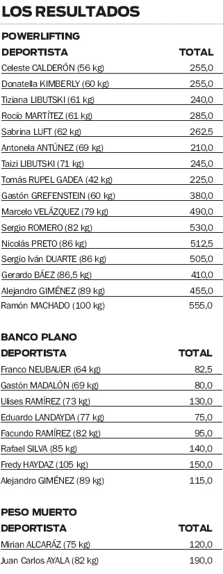 Con sus 42 kilogramos de peso corporal, se quedó con el primer lugar de su categoría al levanta un total de 225,0 kg. La competencia además contó con otros protagonistas que brillaron en anteriores ediciones y que, pese a la falta de competencia oficial, mostraron que siguen vigentes.