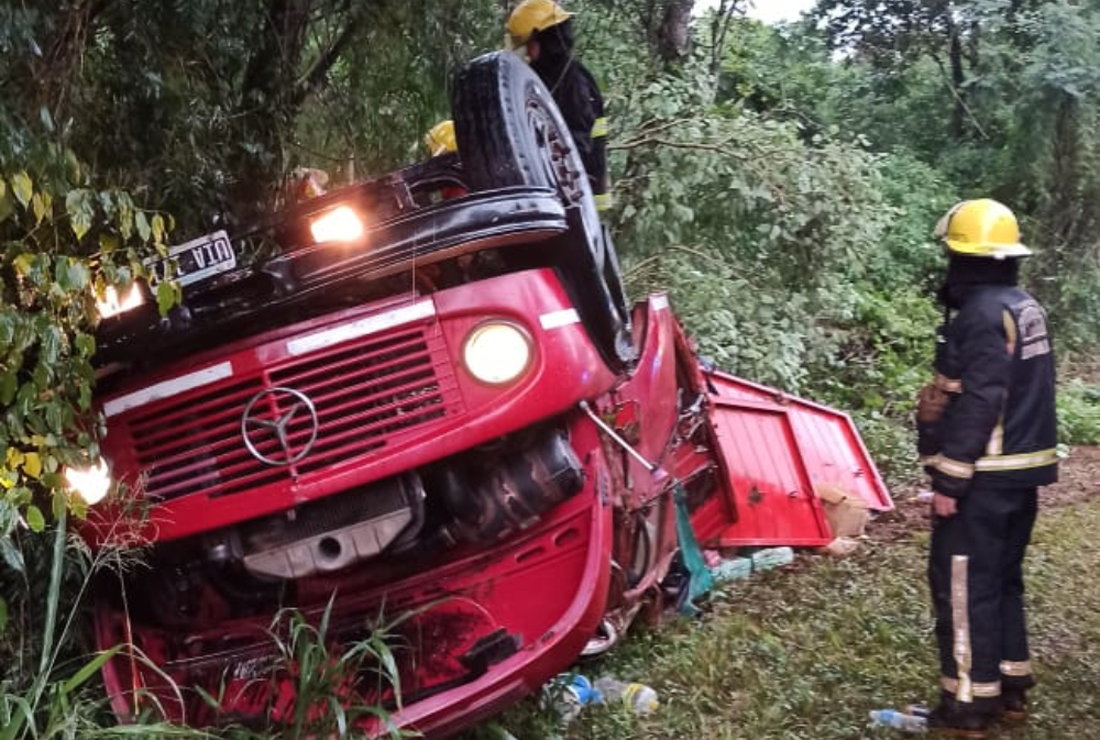 El camión quedó “patas para arriba” en uno de los márgenes de la RN12 y los dos ocupantes terminaron con escoriaciones. Fueron trasladados al Hospital SAMIC de Iguazú para sus curaciones.