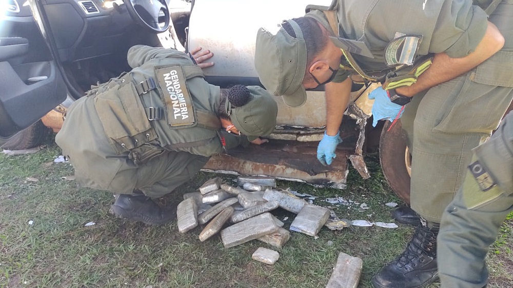 En la jornada de este domingo, integrantes de la Sección Seguridad Vial “Villa Olivari”, dependiente del Escuadrón 47 “Ituzaingó” (Corrientes) de Gendarmería Nacional que realizaban un control sobre la ruta nacional 12, procedieron a examinar un automóvil Peugeot 308 con dos personas a bordo.