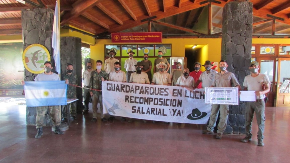 El sector depende del Ministerio de Ambiente y Desarrollo Social, a cargo de Juan Cabandié, por ello no entraron dentro de la recomposición salarial alcanzada por los guardaparques provinciales. Cabe recordar que, días atrás, el cuerpo de guardaparques de la provincia aceptó la propuesta del Ejecutivo, en una reunión mantenida con el ministro de Hacienda, Adolfo Safrán, y el ministro de Ecología, Mario Vialey, logrando un incremento en el adicional por riesgo laboral (ítem 110) que pasó del 90% del salario básico al 250%. Además, se creó un nuevo ítem adicional por dedicación exclusiva equivalente al 25% del salario básico.