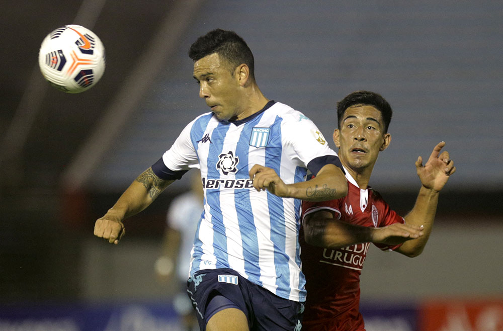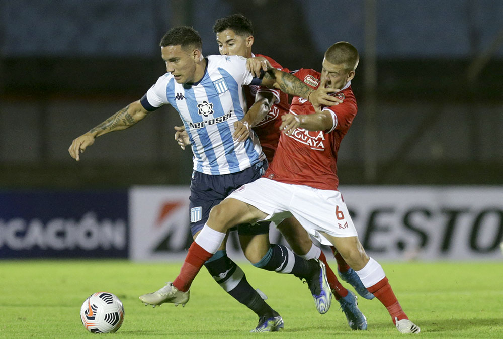 Racing Club, que perdía ante Rentistas como visitante por un gol de Salomón Rodríguez a los 42 minutos del primer tiempo y jugaba con un hombre menos por la expulsión del zaguero Leonardo Sigali, igualó 1 a 1 sobre el final mediante un cabezazo de Juan Cáceres, en un encuentro correspondiente a la primera fecha del Grupo E de la Copa Libertadores y jugado en el Estadio Centenario, de Montevideo.