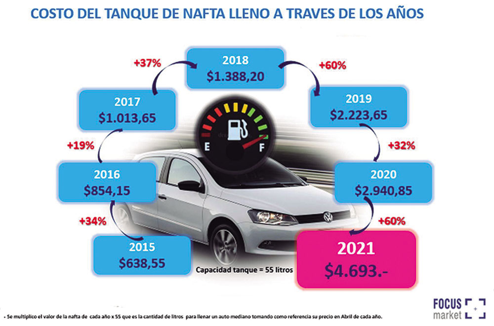 Por su parte, “tanto el sector primario, industrial y servicios se ve muy golpeado por estos aumentos que incrementan sus costos de distribución que en muchos casos es muy difícil derivarlo a precios en un contexto de nuevas restricciones sociales con impacto en la economía”, afirmó Damián Di Pace Director de la Consultora Focus Market.