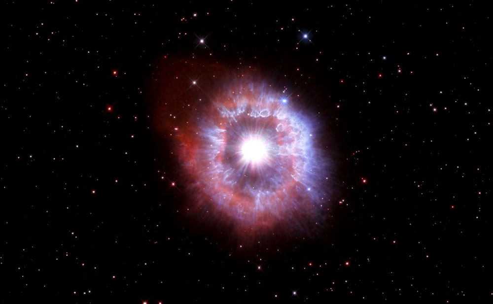 La enorme estructura se creó a partir de una o más erupciones gigantes hace unos 10.000 años. Las capas exteriores de la estrella volaron al espacio, como una tetera hirviendo que se desprende de su tapa, explicaron.