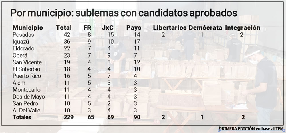 A su vez, Juntos por el Cambio no consiguió que pase un sublema de Eldorado. El total provincial de este sector opositor será de 69 sublemas.