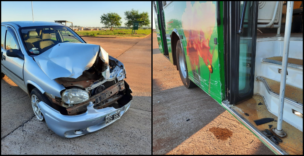 Este lunes por la mañana en el barrio Itaembé Guazú de Posadas se registró un siniestro vial entre un automóvil particular y un colectivo del Sistema Integrado de Transporte Misionero (STIM), en manos del Grupo Z.