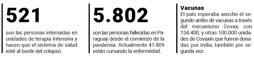 En la misma línea, el director de Vigilancia de la Salud, Guillermo Sequera, informó que en Paraguay se superó “la barrera de los 3.000 internados y hay 500 camas de terapia ocupadas”, una situación que se replica en otros países del Cono Sur.