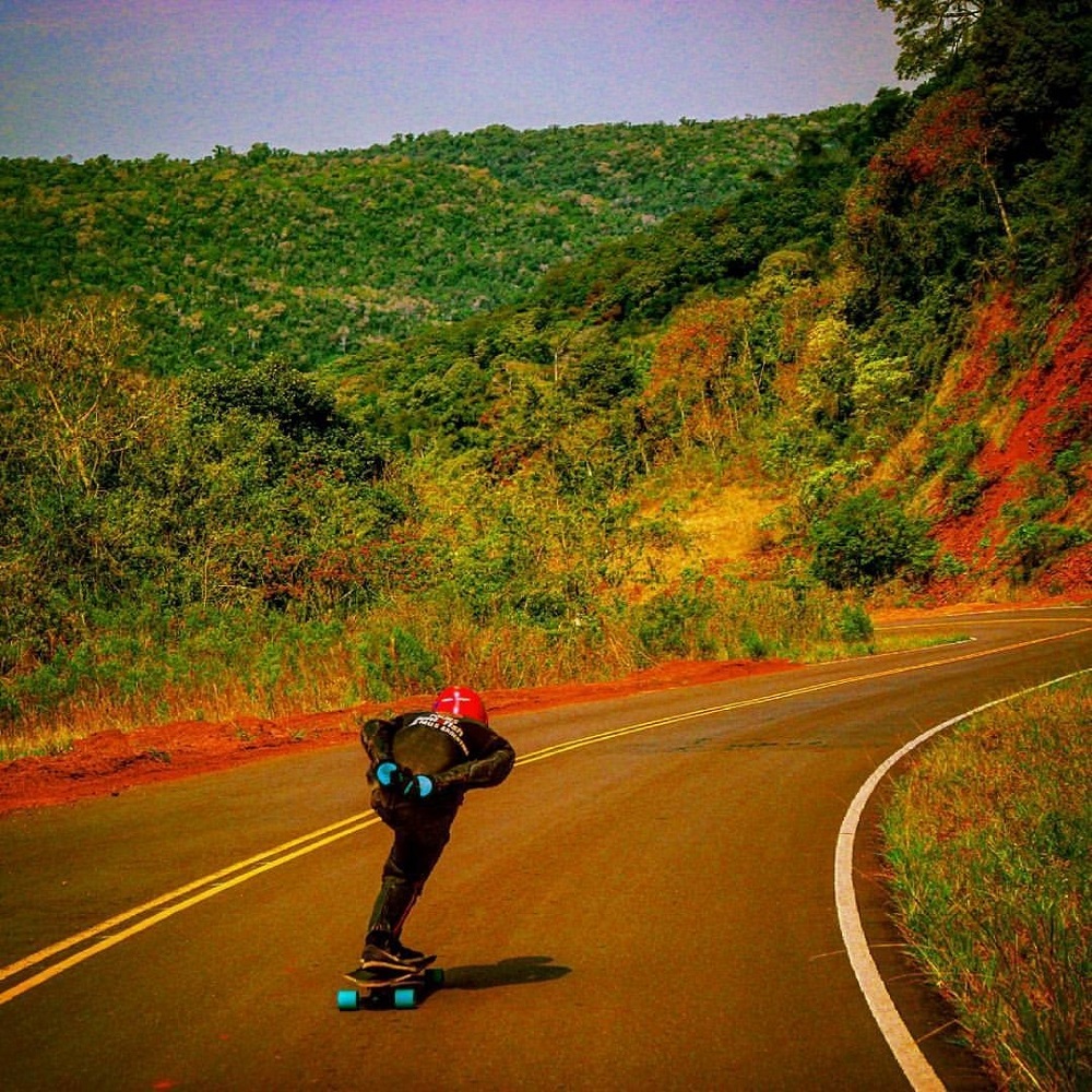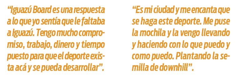Sí, yo estaba viviendo de nuevo en Iguazú, iba y venía y fui trayendo de a poco el deporte y la modalidad porque justo en Iguazú asfaltaron la bajada de la costanera, y se podía practicar el deporte en pleno centro y a un buen nivel. Entonces ahí generé el Iguazú Board, que es el ente que organiza y genera actividades con el deporte. Ahí empezamos a hacer cortes programados, fundamos la escuelita, organizamos campeonatos y pudimos meter alguna fecha nacional, el Iguazú Downhill Race. Ahí se venían chicos de todo el país y la provincia y, por la frontera, venían muchos de Brasil, que ya tiene un desarrollo muy grande del longboard y está profesionalizado. La frontera dio un empuje grande, más que nada porque en Brasil hay un buen nivel. El Iguazú Board ya va a cumplir diez años y ocho desde que arrancamos con la primera competencia.