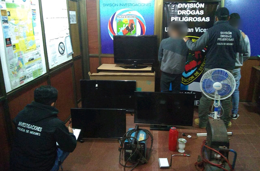 Efectivos de las divisiones de Drogas Peligrosas e Investigaciones de la Unidad Regional VIII, establecieron que en distintos barrios de la ciudad, dos jóvenes estaban comercializando a bajo costo televisores, una soldadora, un compresor de aire, un ventilador, ente otros objetos que fueron incautados en poder de vecinos.